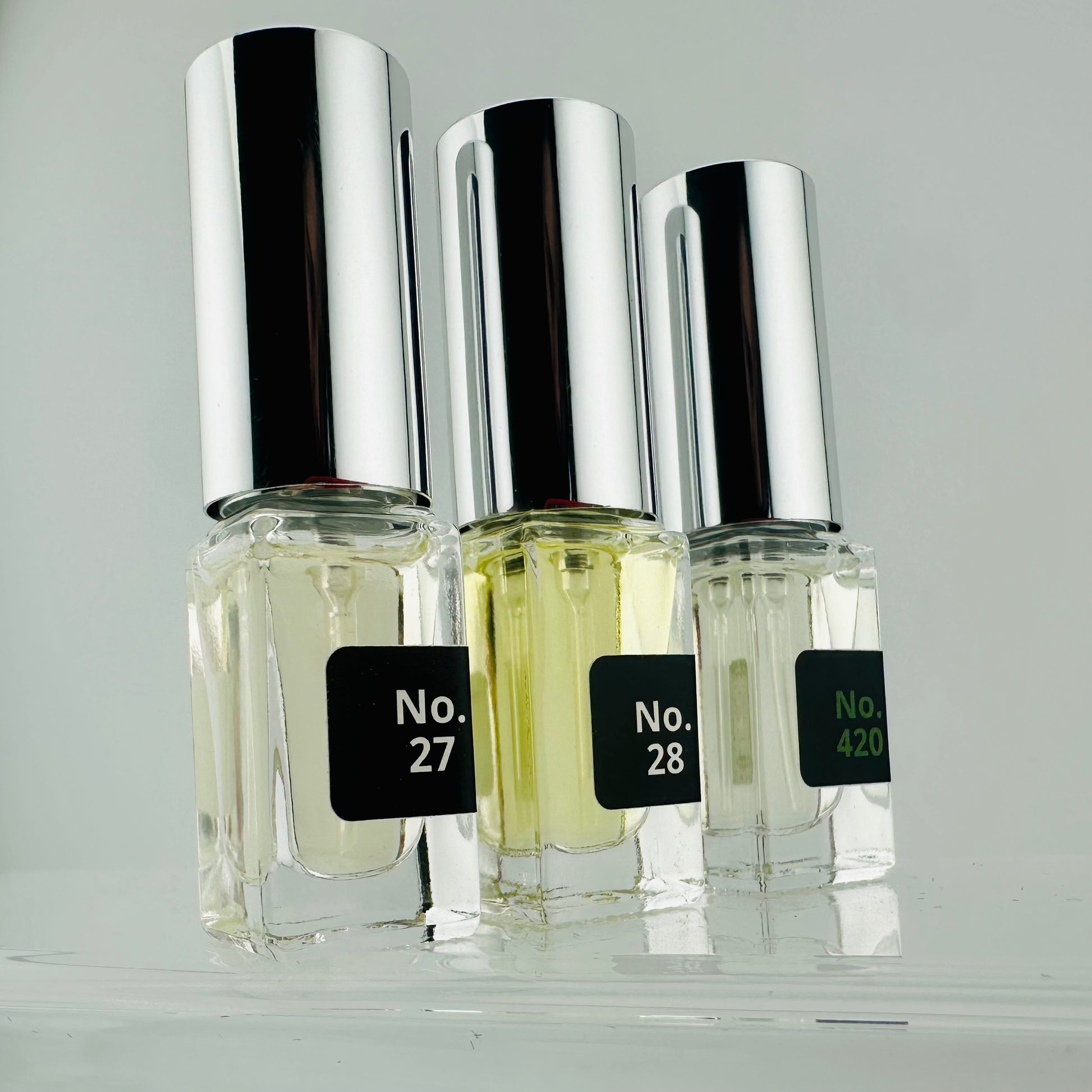 - No. 420 CANNABIS | LIMA | SANDALO: Herbal con sorpresa. La lima abre cítrico y fresco, el cannabis limpio y directo lo pone interesante, el sándalo lo cierra con elegancia. Diferente, pero muy equilibrado — encuentra tu calma interior.
