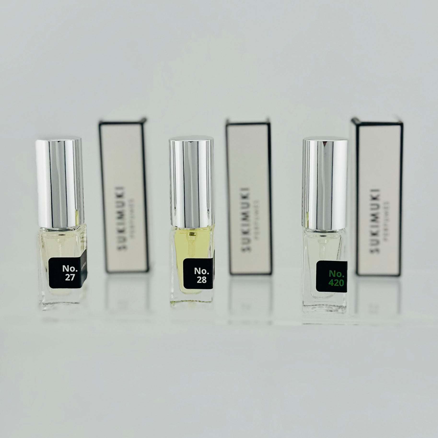 - No. 27 JENGIBRE | VAINILLA: Cálido y con chispa. El jengibre abre con un toque picante y fresco, la vainilla lo redondea sin empalagarse. Tiene personalidad con actitud — de los que se quedan en la memoria.